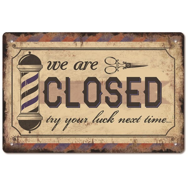 【サイズ・バリエーション】20×30cmと30×40cmの2サイズ展開。20種類のデザインから選べる理髪店・バーバーショップ向けの壁掛けブリキ看板。アメリカンレトロなインテリアにぴったりのデザインです。