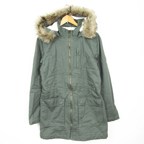 【中古】ギャップ GAP 中綿 ジャケット コート ロング丈 ボア フェイクファー 綿 XS カーキ 小さいサイズ