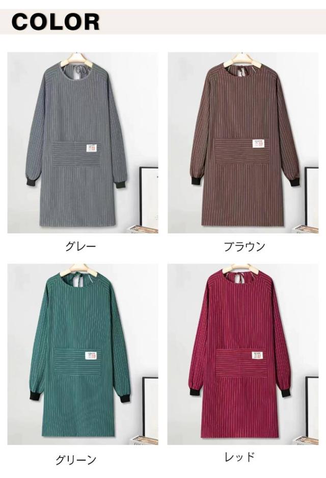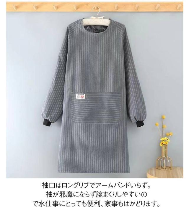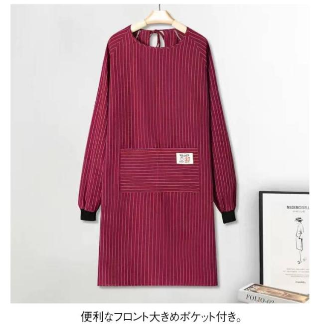 エプロン 長袖 大人用 スモック エプロン 割烹着 おしゃれ 大きいサイズ レディース ロング エプロン メンズ 北欧 ストライプ柄 ポケット付き 介護士 保育士 飲食店 キッチン用品 作業着 大人 シンプル ゆったり かわいい 母の日 プレゼント ギフト 送料無料