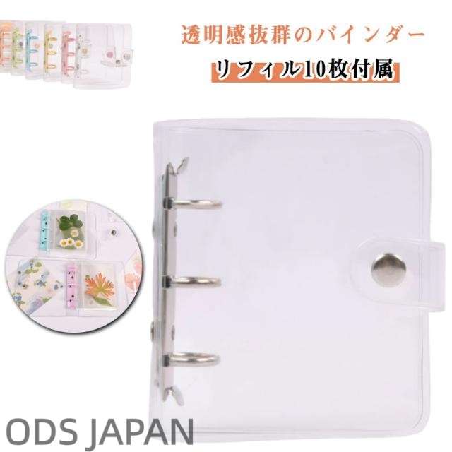 | 透明感抜群のバインダー 【リフィル10枚付属】 クリア素材の手帳で、自分だけのオリジナルデコレーションが楽しめます。 透明のリフィルが20枚付属。透明だから収納したアイテムがクリアに見えてコレクションの魅力を最大限に引き出します。 リフィルにはトレカやシール、チェキ、 チケットなども入れられて便利。立体シールなどを貼ってシール帳として活用しよう! A8サイズ!大きく広げた手にのる手のひらサイズで持ち運びにピッタリ! | |