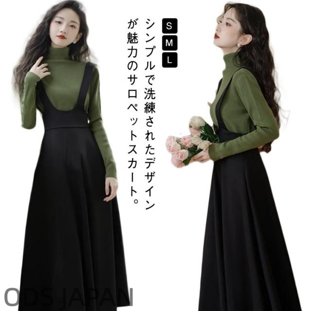 ジャンスカ ジャンパースカート サロペット スカート ワンピース レディース 30代 40代 50代 サロペットスカート Aライン ロング ハイウエスト aラインスカート 春夏 秋 サロペスカート オーバーオール レイヤード 重ね着 きれいめ 大人可愛い 体型カバー 黒 無地