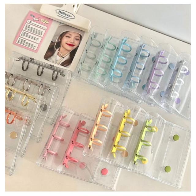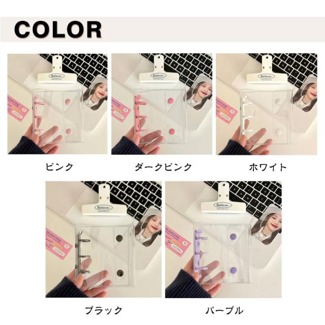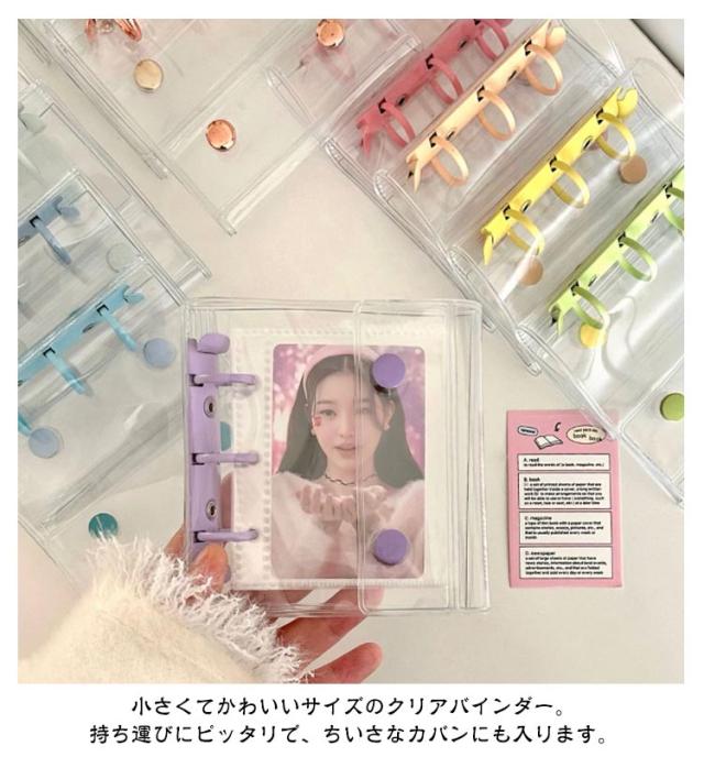 シール帳 透明 シール クリア バインダー 透明 シール手帳 ボタン付き 透明バインダー 3穴 コンパクト手帳 カスタマイズ手帳 手帳型 アクスタケース トレカ収納 推し カラー ファイル 推し活グッズ 持ち運び オタ活グッズ かわいい PVC 送料無料