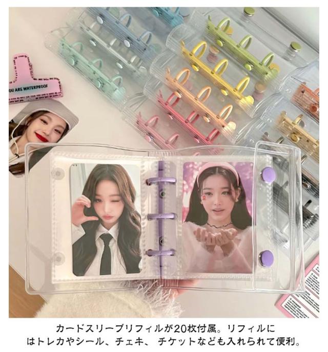【リフィル20枚付き】シール帳 透明 シール クリア バインダー 透明 シール手帳 ボタン付き 透明バインダー 3穴 コンパクト手帳 カスタマイズ手帳 手帳型 アクスタケース トレカ収納 推し カラー ファイル 推し活グッズ 持ち運び オタ活グッズ かわいい PVC 送料無料