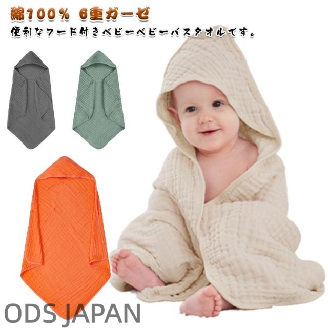 ベビーバスタオル フード付き ベビータオル 6重ガーゼ バスタオル 湯上りタオル ガーゼタオル 赤ちゃん 正方形 プールタオル 巻きタオル ラップタオル バスローブ バスポンチョ おくるみ ギフト 幼稚園 保育園 送料無料