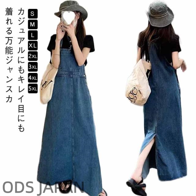 デニム ジャンスカ ジャンパースカート レディース デニムサロペットスカート サロペット フレア スカート ワンピース ロング ゆったり バックスリット 春夏秋冬 オーバーオール オールインワン きれいめ 大人 カジュアル