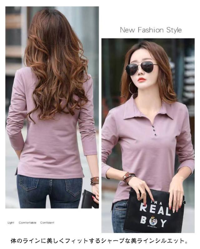 | シンプルなデザインなので飽きも来ない長袖ポロシャツです。 体のラインに美しくフィットするシャープな美ラインシルエット。 シンプルで合わせやすく、上品なデザインもポイントです。 リラックス感と大人の女性らしい印象をプラスしてくれる長袖カットソーに仕上がっています。 シンプルなデザインだからオフィスでも◎普段にもコーデがしやすく長く着ていただけます。 | |