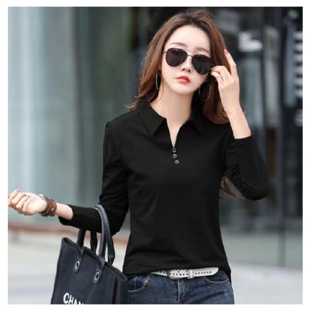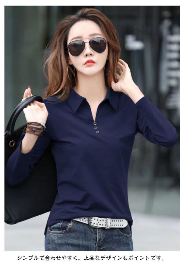 ポロシャツ レディース 長袖 ポロTシャツ カットソー トップス Vネック 長袖 ポロシャツ 襟付き シャツ タイト スキッパーシャツ 無地 とろみ スキッパー タイト スリム OL 通勤 通学 ビジネス カットソー スリムTシャツ