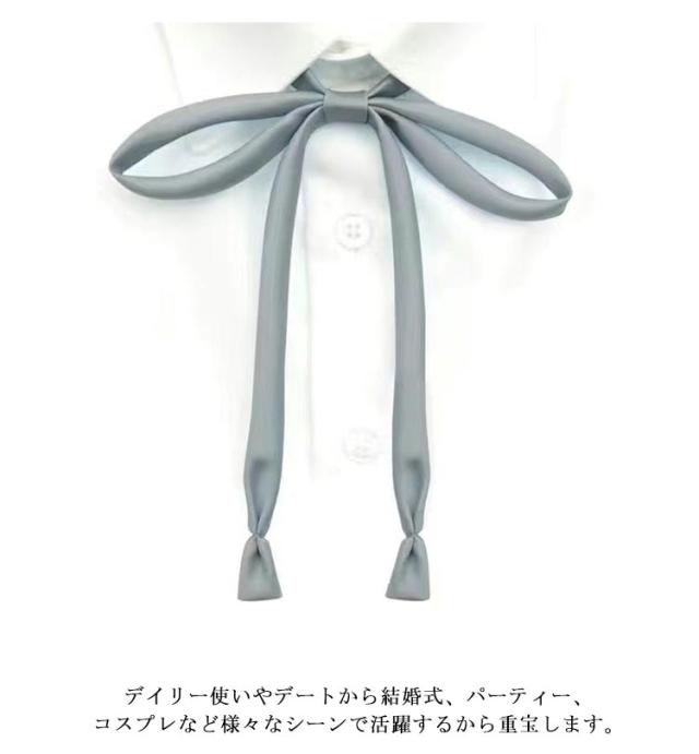 | 【2点セット】 いつものスタイルを新鮮な印象に変えてくれるリボンタイ。 シンプル細いリボンタイが登場しました。 シャツやワンピース、ニットなど色々なアイテムと合わせやすく、メリハリのある上品スタイル完成。 デイリー使いやデートから結婚式、パーティー、コスプレなど様々なシーンで活躍するから重宝します。 | |