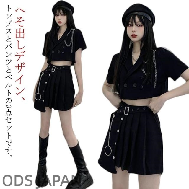黒 k-pop 衣装 レディース セットアップ へそ出し 半袖 トップス ジャケット スカート 大人 高校生 ジャズダンス ヒップホップ 韓国 アイドル衣装 高校生 女の子 大人向け 上下3点セット ダンスウェア JAZZ 演出服 練習着 ステージ衣装 オシャレ 派手