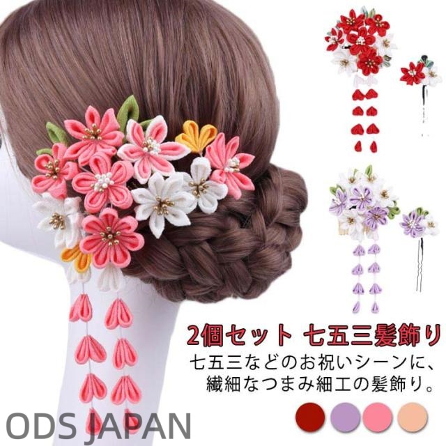 | 2個セット 七五三髪飾り 七五三などのお祝いシーンに、繊細なつまみ細工の髪飾り。 水引飾りが可愛い七五三髪飾り!3才、7才 小学生の卒業式にも! 1つあればお顔周りがパッと華やぐので、特別な日の装いのワンポイントとして最適です。 | |