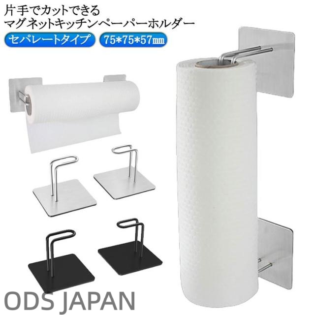キッチンペーパーホルダー マグネット コストコ 対応 ステンレス 磁石 挟み込み式 セパレートタイプ キッチン ペーパータオル ペーパーホルダー 片手 切れる 片手でカット ブラック シルバー おしゃれ 縦型 横型 冷蔵庫 収納 モノトーン 大判海外製にも対応 送料無料