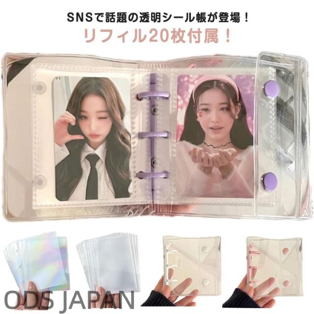 【リフィル20枚付属】 シール帳 透明 シール クリア バインダー 透明 シール手帳 ボタン付き 透明バインダー 3穴 コンパクト手帳 カスタマイズ手帳 手帳型 アクスタケース トレカ収納 推し カラー ファイル 推し活グッズ 持ち運び オタ活グッズ かわいい PVC 送料無料
