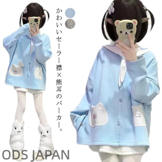 セーラー襟 パーカー レディース 熊耳 かわいい 前開き 高校生 ストリート カジュアル ダンス衣装 練習着 おしゃれ 原宿系 S M L XL 2XL