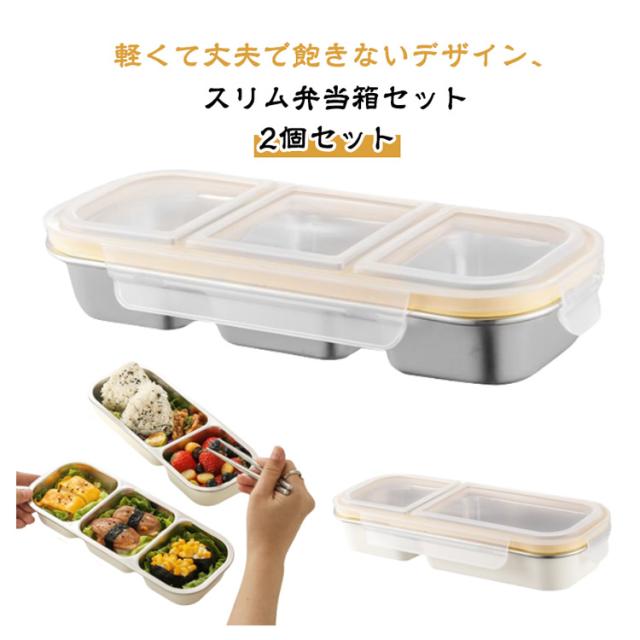 弁当箱 スリム ランチボックス 2個セット ステンレス 子供 大人 大容量 仕切り お弁当箱 ランチボックス おしゃれ シンプル 洗いやすい 仕切り付き 弁当 メンズ レディース 通勤 通学 ピクニック 可愛い かわいい 軽量 保存容器 漏れない