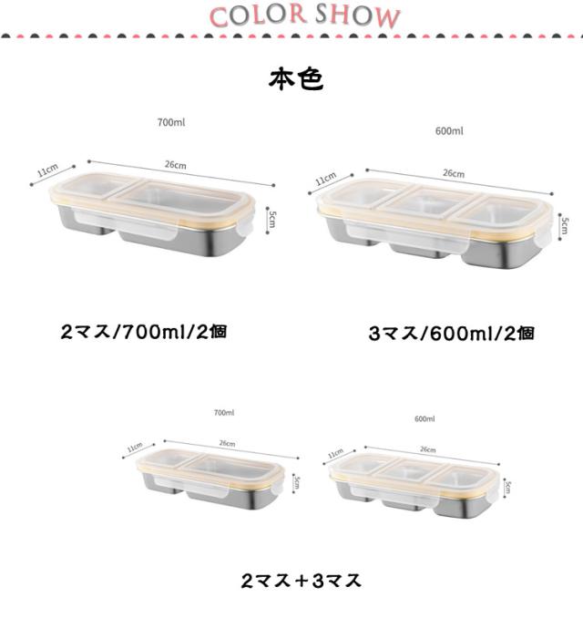 | サイズについての説明 | 2マス:700ml/26*5*11cm 3マス:600ml/26*5*11cm ※サイズ表の実寸法は商品によって1-2cm程度の誤差がある場合がございます。 |