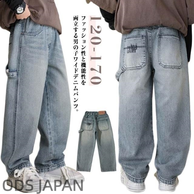 男の子 デニムパンツ ワイドパンツ 子供 ズボン ジーンズ ボーイズ ロングパンツ ダンス衣装 ボトムス ウエストゴム 普段着 通園 通学 ストリート ゆったり ダンス衣装 ヒップホップ