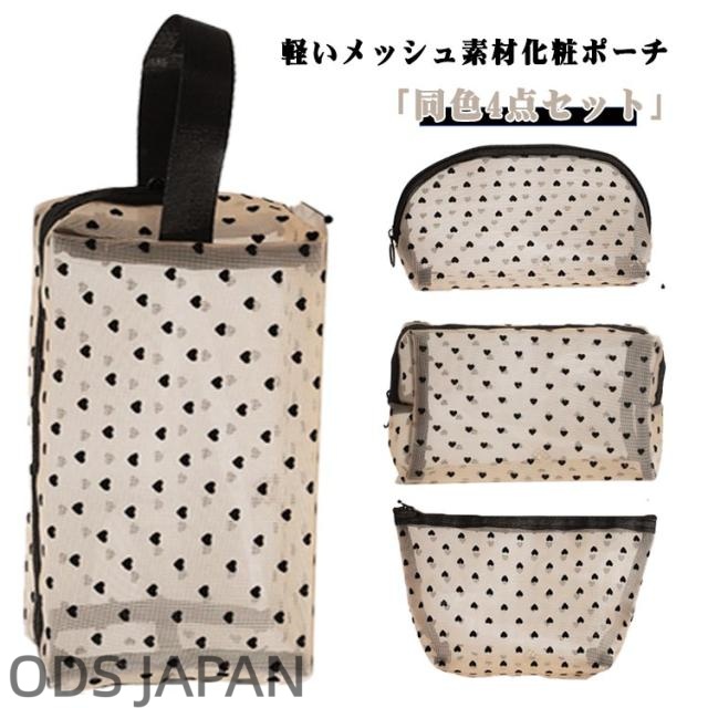 4点セット メッシュ ポーチ 化粧ポーチ ハート ポーチ メッシュポーチ クリアポーチ クリア 透明感 コスメポーチ トラベルポーチ メイクポーチ コンパクト ハート柄 軽量 大容量 収納便利 可愛い 出張 旅行 ジム 大 中 小