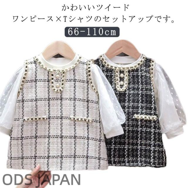 | かわいいツイードワンピース×Tシャツのセットアップです。 お嬢様っぽくすごく可愛いです。 洗練されたデザインで、春や秋、冬の寒い季節にも着てOK! 高級感と可愛らしさが漂う、カジュアルの場合はもちろん、発表会と演出会やパーティなどのフォーマルな場面に着こなしてもおすすめです。 シンプルなデザイン、カジュアルにしても、フォーマルにしても、普段着、入園、お入学、お受験、面接、お出かけなどに大活躍。 | |
