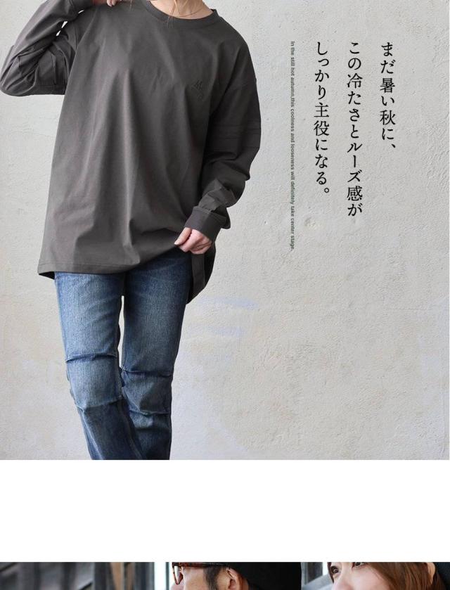 涼しい tシャツ 長袖 メンズ レディース ロングtシャツ ワイド すっきり 着痩せ 接触冷感 コットン ストレッチ 落ち感 お尻 体系 カバー 袖ライン 袖リブ ワンポイント 王冠 刺繍 長t カジュアル パティ