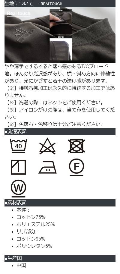 ・コットンの肌ざわりの良さに、ポリエステルの乾きやすさ・扱いやすさを持ち合わせた「軽さと丈夫さのバランス」型。