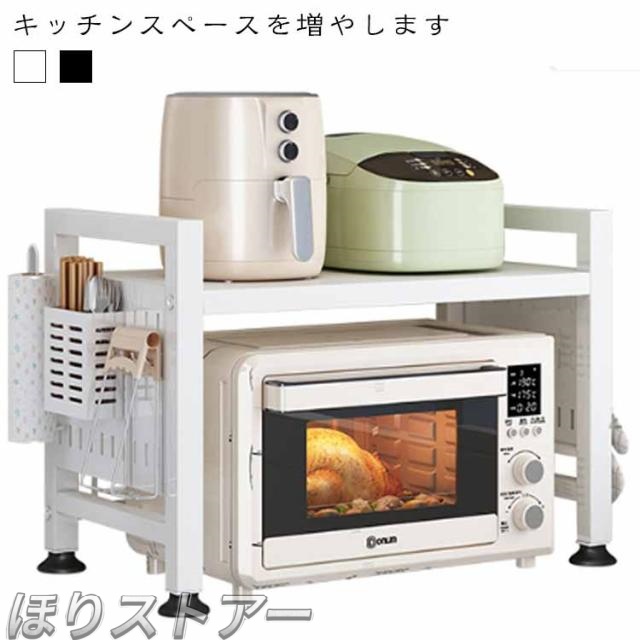 | キッチンスペースを増やします 高さと幅が調節できるので大型レンジにも使えます 組み立て簡単! キッチンのインテリアに馴染みやすい、シンプルなデザインです さまざまな形の調理家電もすっきり整理整頓 | |