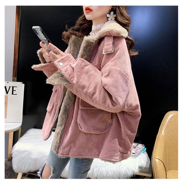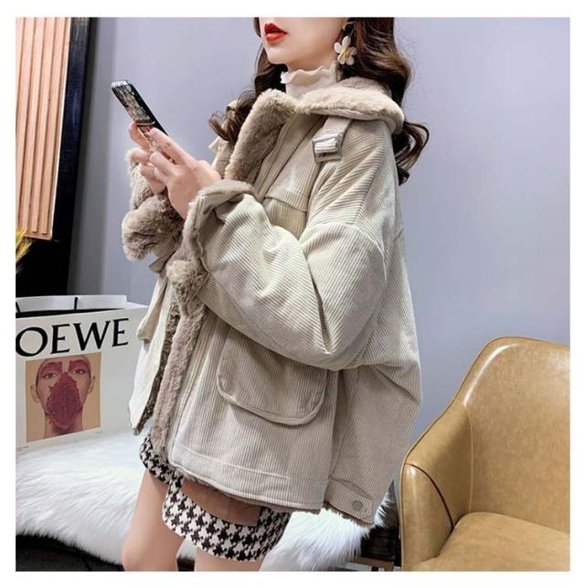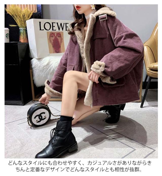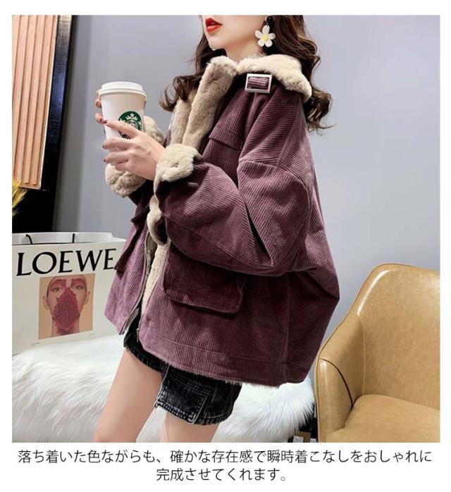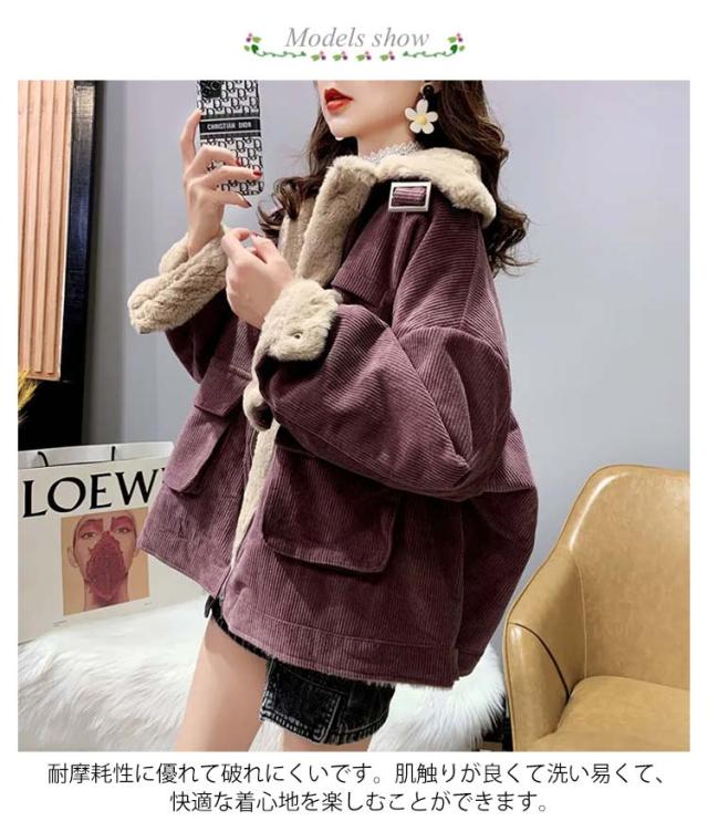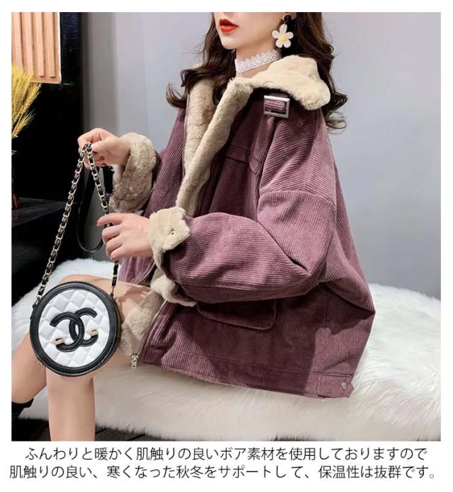 コーデュロイジャケット 裏ボア ジャケット ボアジャケット カジュアルジャケット 裏ボア 防寒ジャケット ショート丈 アウター ドロップスリーブ 綿 暖かい 秋冬 冬物 レディース ポケット付き