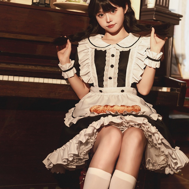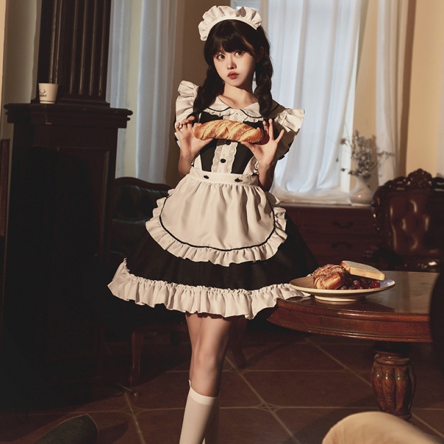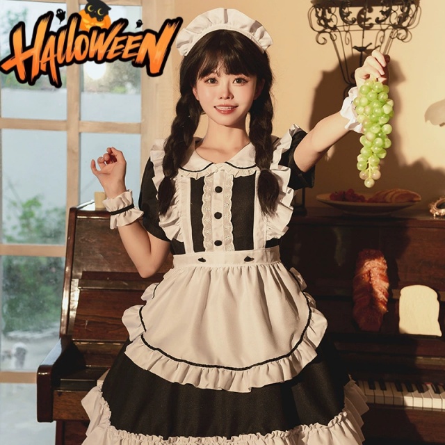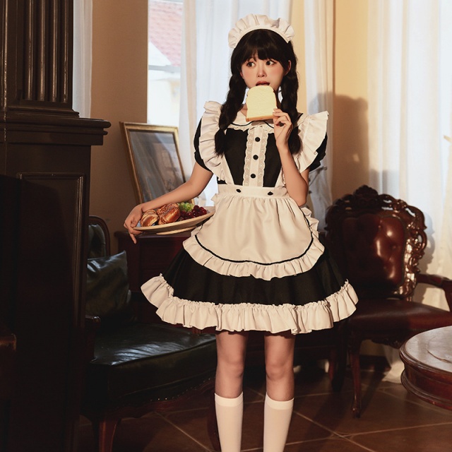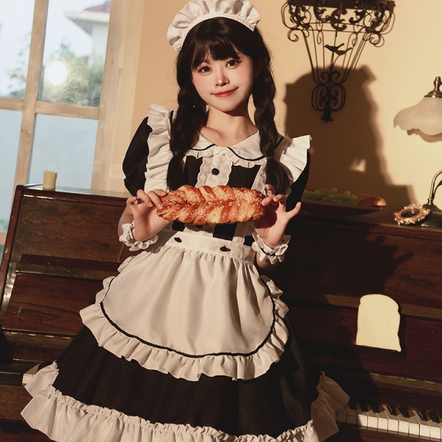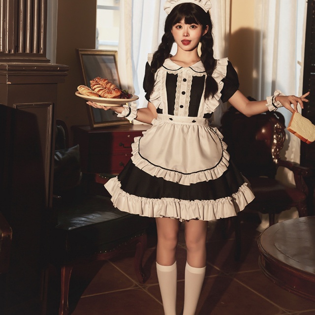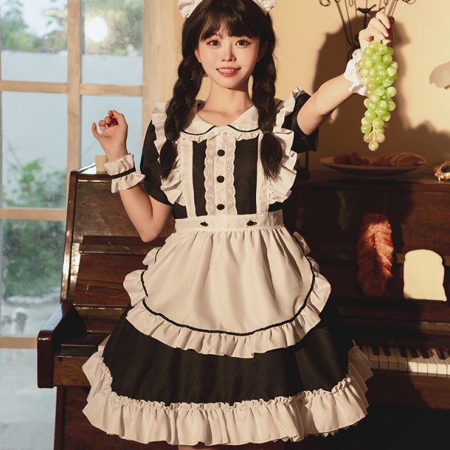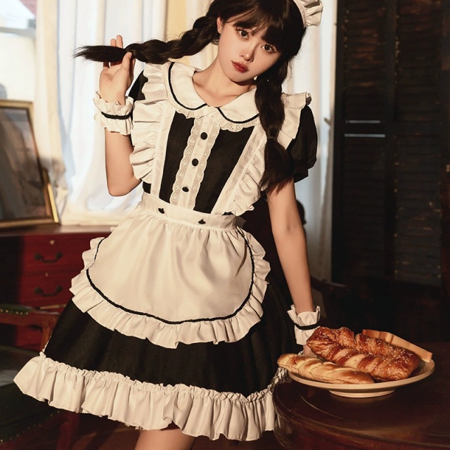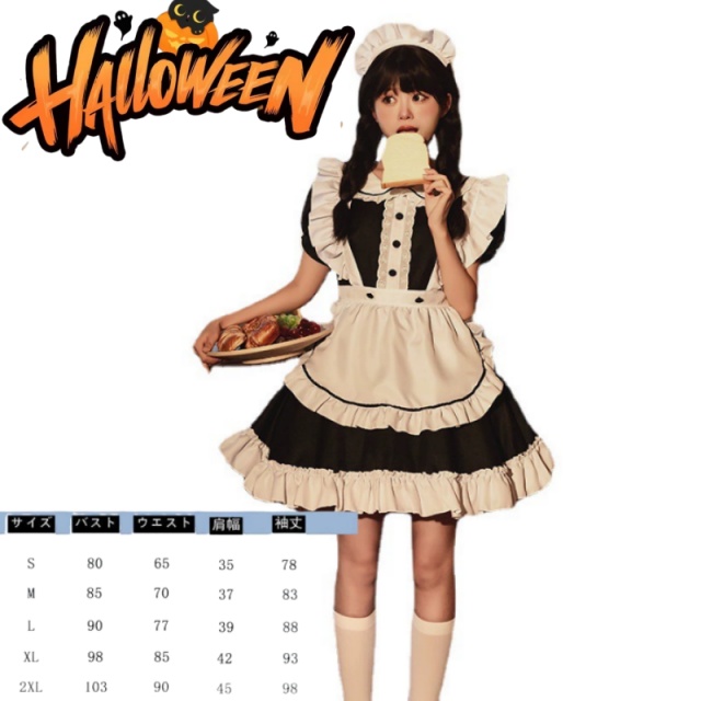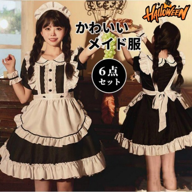 メイド服 6点セット 舞台 可愛い 女の子 レディース 半袖 ロリータ ワンピース 黒 ピンク 衣装送料無料