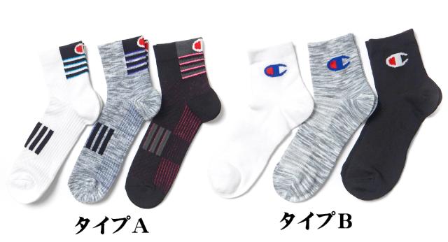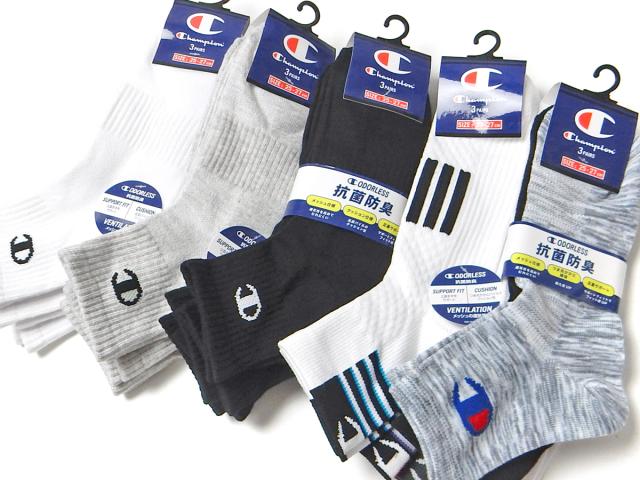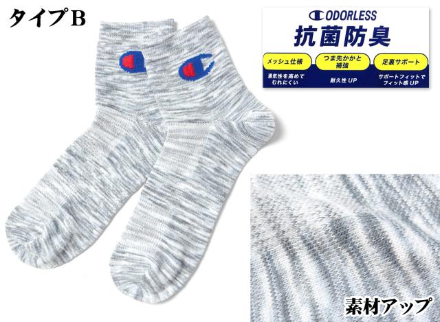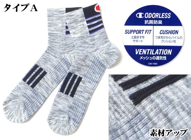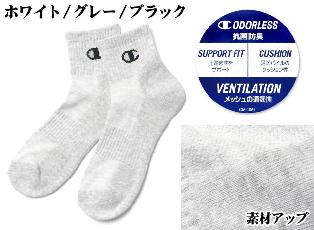 【送料無料】3足組セット 紳士 メンズ クォーター丈 ソックス 靴下 Champion/チャンピオン 抗菌防臭 甲メッシュ 足裏サポート 25-27cm yg-2776【メール便対応】
