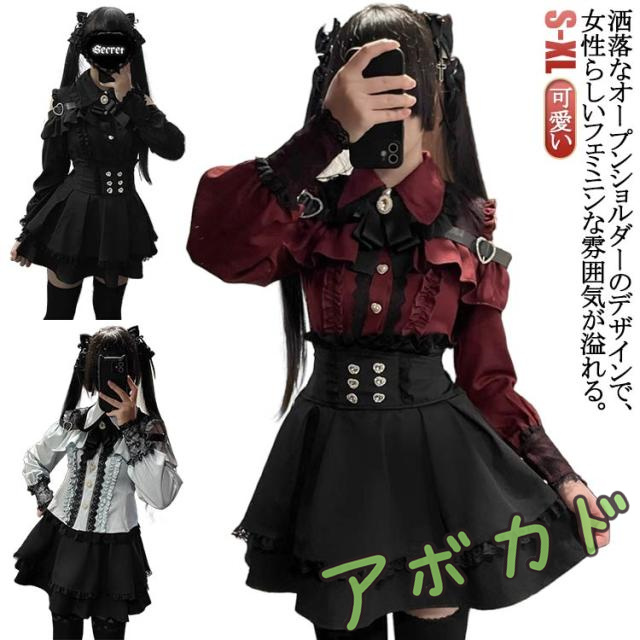 | お洒落なオープンショルダーのデザインで、女性らしいフェミニンな雰囲気が溢れる。 肩にはキラキラしたハートバックル付きで可愛い。 袖口にもレース付きで、華やかさがUP。リボンブローチが取り外し可能です。 ウエストに付いている飾り用ハートボタンがポイント。 Aライン&ハイウエストのスカートは着痩せ・高見え効果が抜群。ウエストにはゴム付きです。 幅広く活躍:量産型、地雷系、ガーリー系、ロリータ系コーデにおすすめです。女子会、デートなど様々なシーンで幅広く活躍中。お洒落で可愛いデザインで、プレゼントとしてもピッタリです。 | |