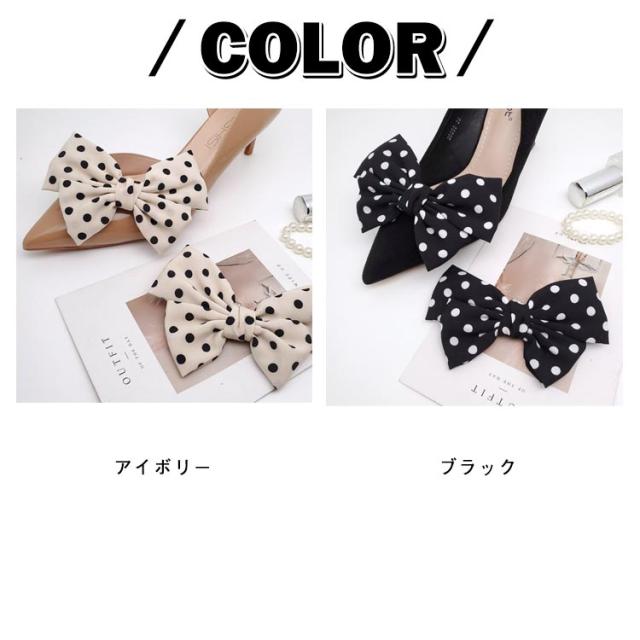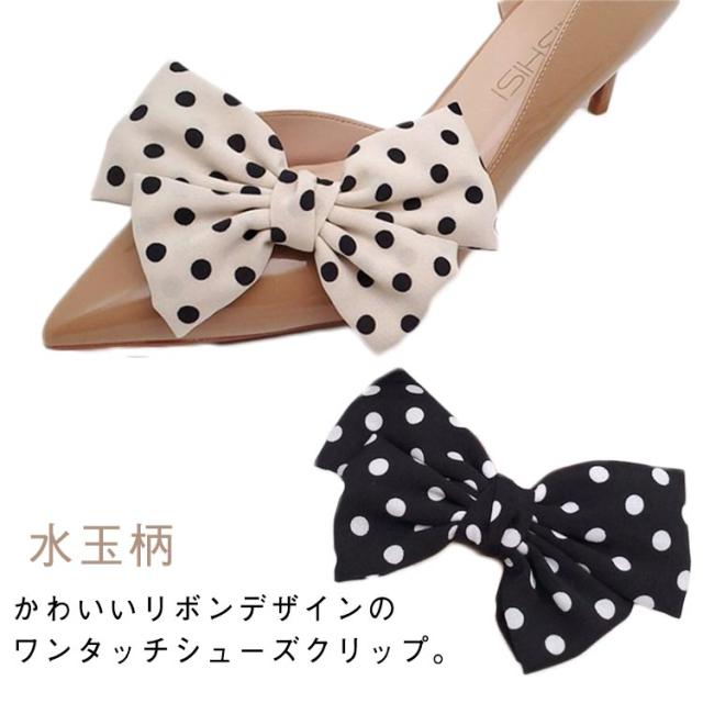 シューズクリップ ビジュー 装飾品 水玉柄 シューズアクセサリー 飾り 靴クリップ ドット柄 お呼ばれ 結婚式 パンプス リボン ビッグリボン クリップ リボンクリップ かわいい シューズクリップ シューパーツ 取外しOK 着せ替え レディース 女性 靴飾り