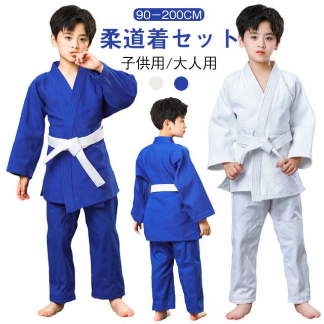 大人 上下セット 綿 授業用 柔道衣 ジュニア 90?200cm 中学 白 高校生 子供 授業 柔道 上下白帯セット 青 柔道衣 柔道着 男女兼用 道着 子供用 ホワイト ブルー 中学生 小学生 3点セット 初心者 部活 白帯付き 大人