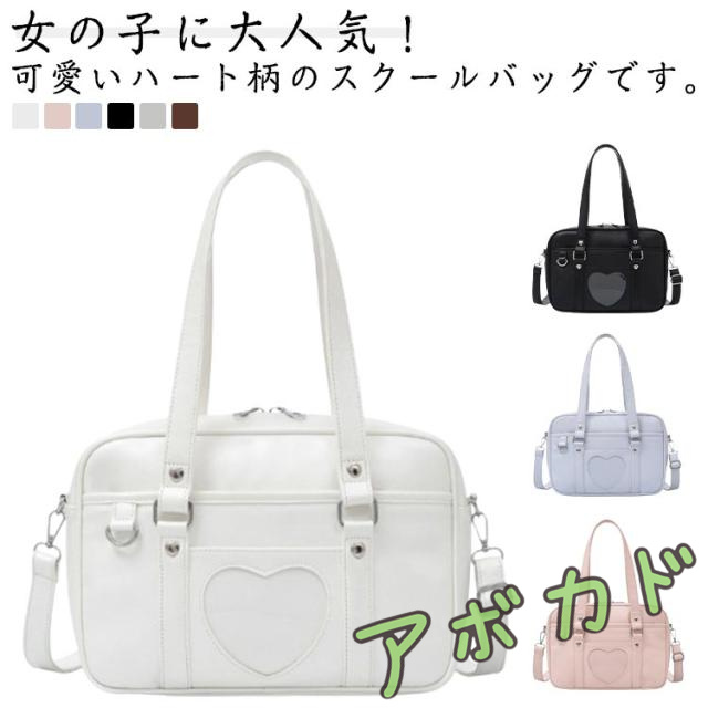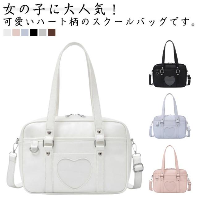 スクールバッグ 部活 トートバッグ 女子高生 斜めがけ 2way スクールバッグ かわいい 大容量 肩掛け スクバ 女子高校生 Dカン付き 合皮 JK 入学 ハート 卒業式 入学式 通学 ショルダーバッグ 学校 可愛い PUレザー 全6色 無地 おしゃれ ギフト プレゼント