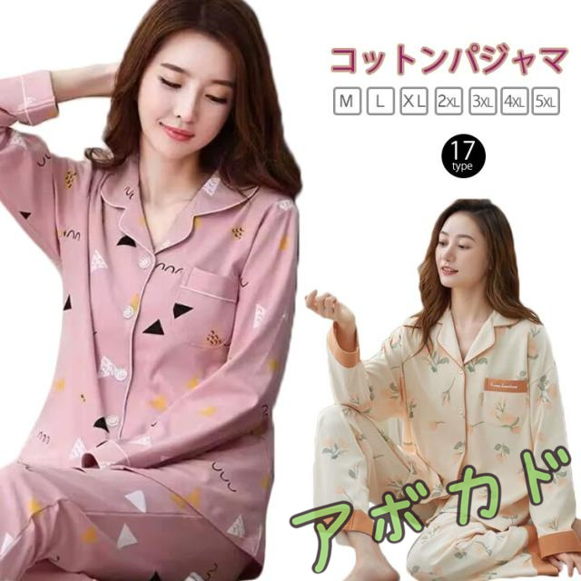 | M-5XL コットンパジャマ 豊富な柄展開がかわいい前開きパジャマ。 窮屈感のない、ゆとりのあるシルエット。 ウエストは総ゴム仕様でらくちん。 | |