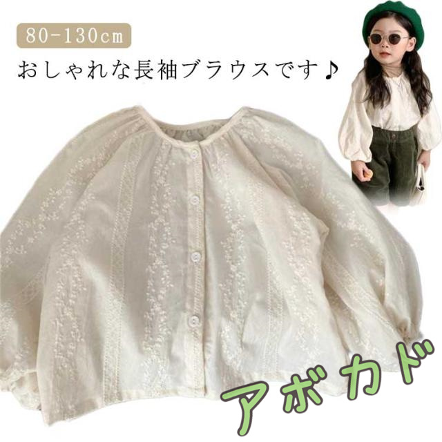 | おしゃれな長袖ブラウスです♪ シンプルなデザインで重ね着にもかわいい一枚です☆ ボリュームたっぷりの袖がかわいらしい、シアー感たっぷりな刺繍ブラウス。 ボタンを開けて羽織としても着用して頂ける。 ノーカラーで顔周りはすっきりとしたデザイン。 カジュアルにパンツに合わせても、ガーリーにスカートに合わせても、コーデの幅が広がる万能ブラウス。 気持ちの良い生地で、温かいです。かわいらしく、園服、通学、お受験、面接、発表会、七五三、フォーマル、冠婚葬祭でも使えます。クリスマス・お子様の誕生日・記念日などにプレゼントとして最適です。 | |