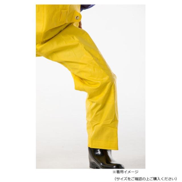 商品詳細:厚み0.35mmPVCシートとトリコットを貼り合わせた、肌触りの良いソフトな履き心地のサロペット。着脱がしやすいように脇部分にボタン付きのマチが付いています。作業時に膝をついても破れにくい、ひざ部分補強仕様。しっかりした厚みの生地で寒さから守り、土木、現場作業を快適にサポートします。 生産国:中国 素材・材質:基布:ポリエステル100%(表面に塩化ビニル樹脂引き) 商品サイズ:23 仕様:適応胸囲:90~98cm適応身長:165~170cm耐水圧(初期値):20000mmH2Oベルト通し付き防水加工