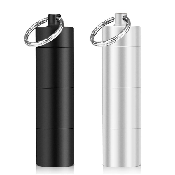 Opret ピルケース 携帯型 サプリケース 防水 ニトロ 薬入れ 一日三回 飲み忘れ アルミ合金 キーホルダー ゴムパッキン付き 3連結 2色セット ブラック+シルバー