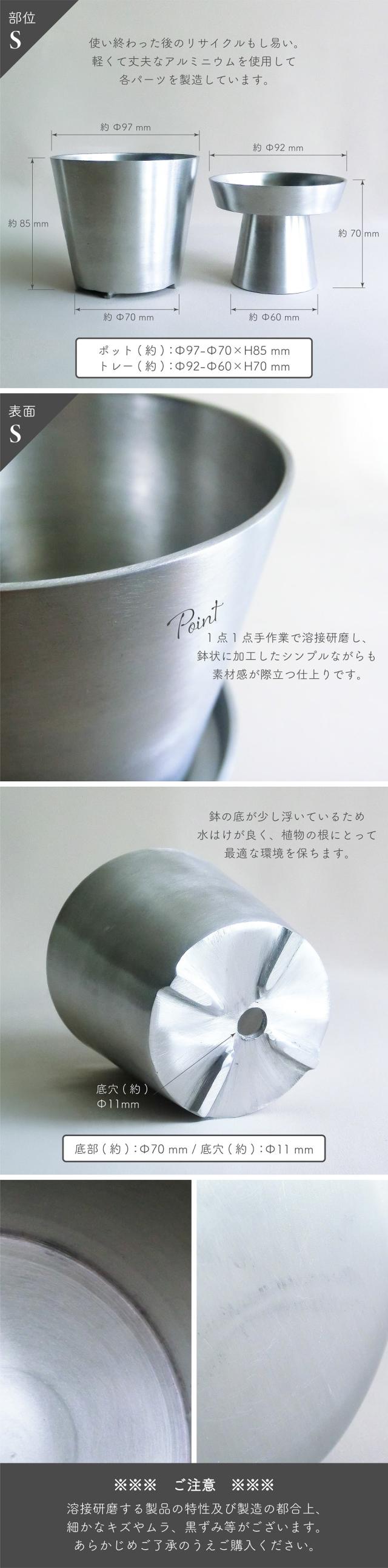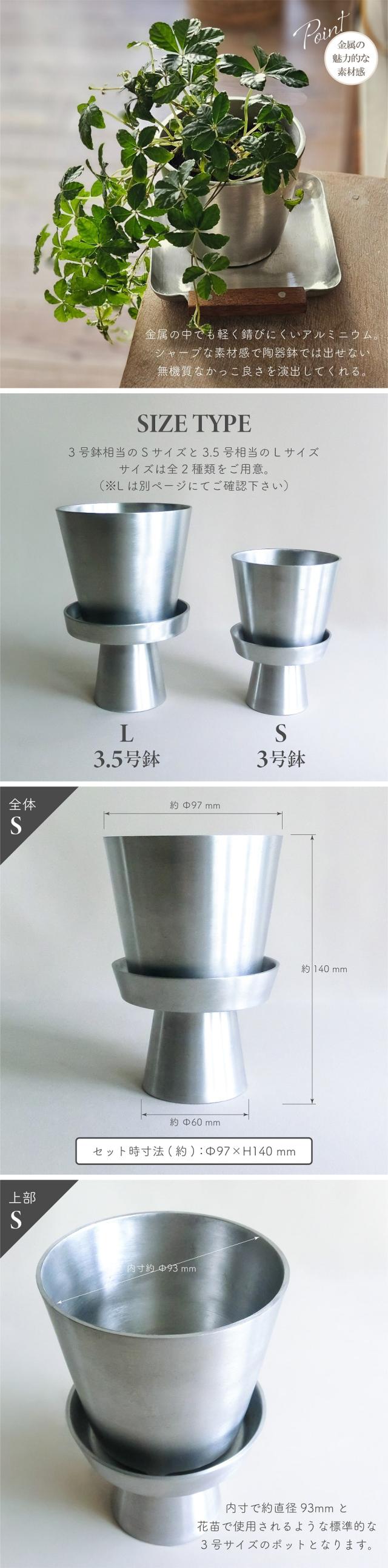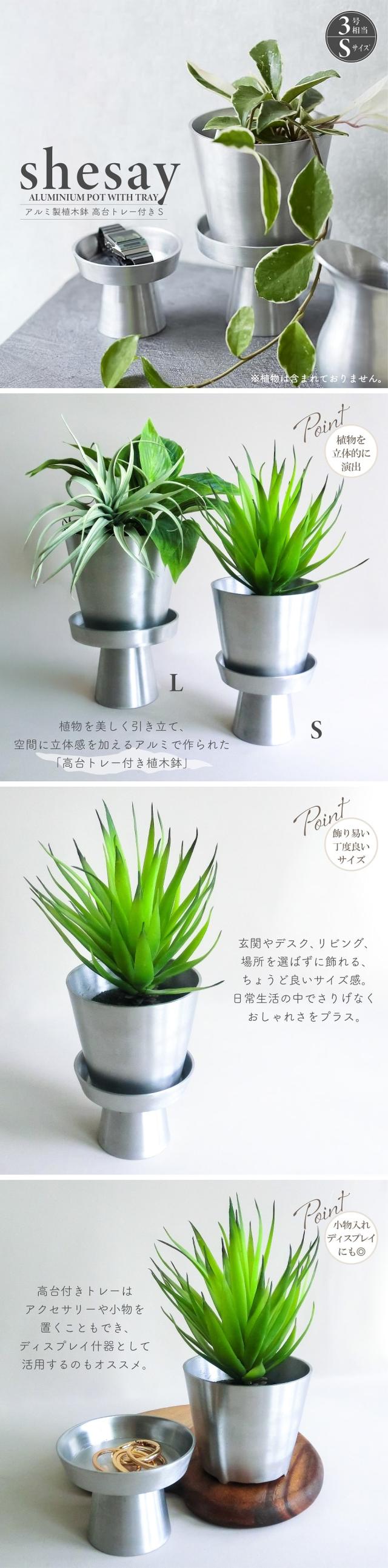 鉢 プランター shesay シセイ アルミ製植木鉢 高台トレー付属 Sサイズ 3号鉢 アルミ製 底穴あり 軽量 インダストリアル 植木鉢 園芸 ガーデニング 小物置き ディスプレイ 什器 おしゃれ インテリア