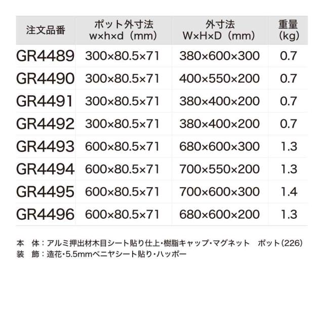 ・本 体 :アルミ押出材木目シート貼り仕上 樹脂キャップ・マグネット ポット(226)