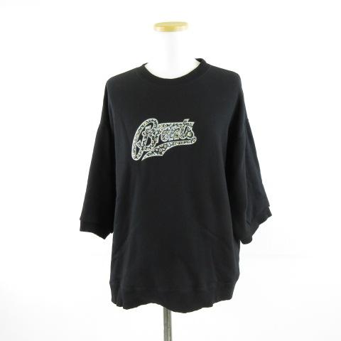 【中古】ハク スーパーハッカ H.A.K BRENTS コラボ トレーナー 七分袖 ロゴプリント 黒 *A15 レディース