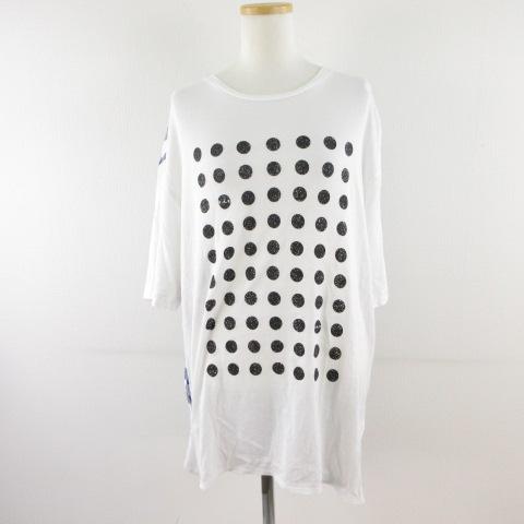 【中古】ハク スーパーハッカ H.A.K チュニック 七分袖 プリント チェック 白 *T277 レディース