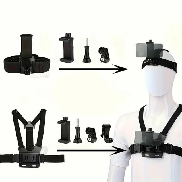 チェストストラップマウント 自転車撮影セット チェストマウントハーネス ヘッドマウントハーネス スマホ スマホブラケット POV撮影 vlog カメラ撮影 自撮り 一人称視点撮影 撮影グッズ iPhone GoPro DJI Insta360 ウェアラブルカメラ アクションカム用アクセサリー