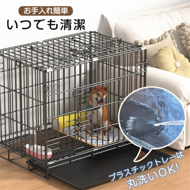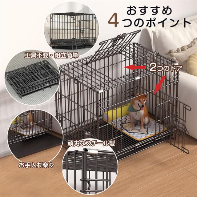 ペットケージ 犬 猫 ペットサークル 折りたたみ式 2つドア 引き出し トレー付 犬ケージ 屋根付 室内 小型 中型 大型 犬小屋