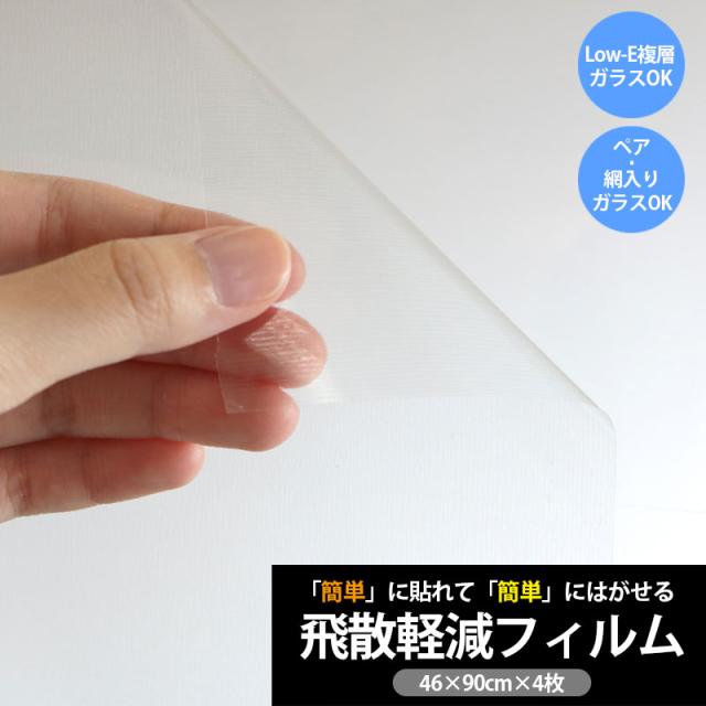 台風対策 窓ガラスフィルム 飛散軽減 防災 窓貼りシート GHK-0104 46cm×90cm 4枚入り 窓用 フィルム 飛散防止 台風 対策 ペアガラス 網入りガラス Low-E 複層ガラス クリア 透明 貼ってはがせる DIY 送料無料 475320
