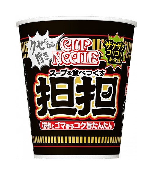 ねりゴマのコクと花椒のピリッとした辛さとシビれ、ピーナッツバターの香りと甘みをきかせた、コクとキレのあるスープが特長です。"ザクザク" のカシューナッツや "コリコリ" のザーサイが入った、食感豊かな「カップヌードル」です。