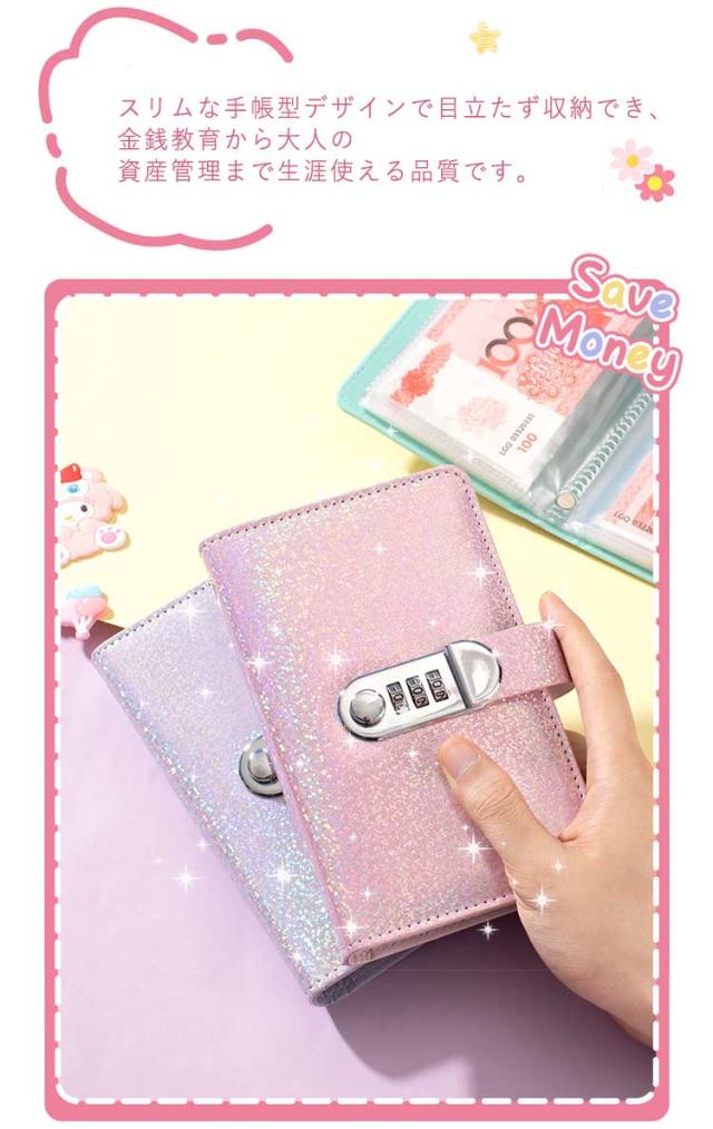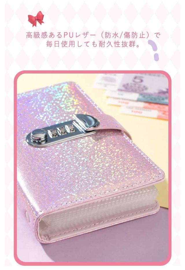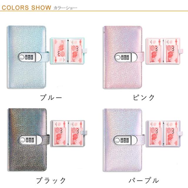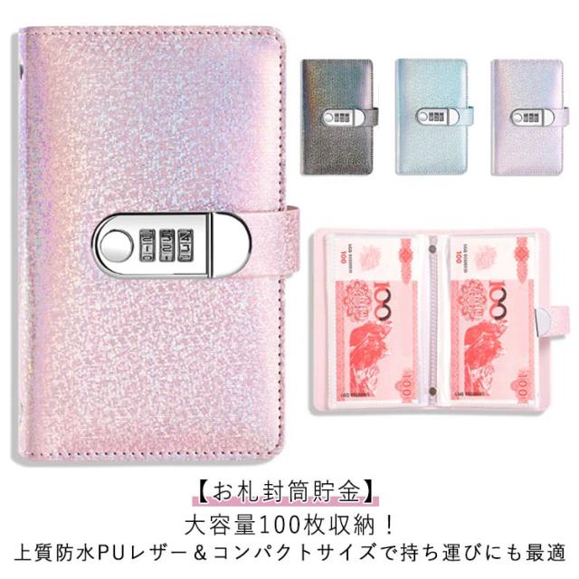 キラキラ お札封筒貯金 ダイヤルロック付き 100枚収納可能 貯金箱 おしゃれ 封筒貯金 お札 貯金箱 貯金ファイル バインダー 現金詰めバインダー 折らない 札 貯金封筒 貯金ファイル バインダー お金仕分け 封筒貯金 通貨オーガナイザー 現金節約バインダー