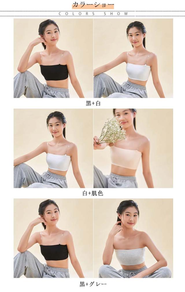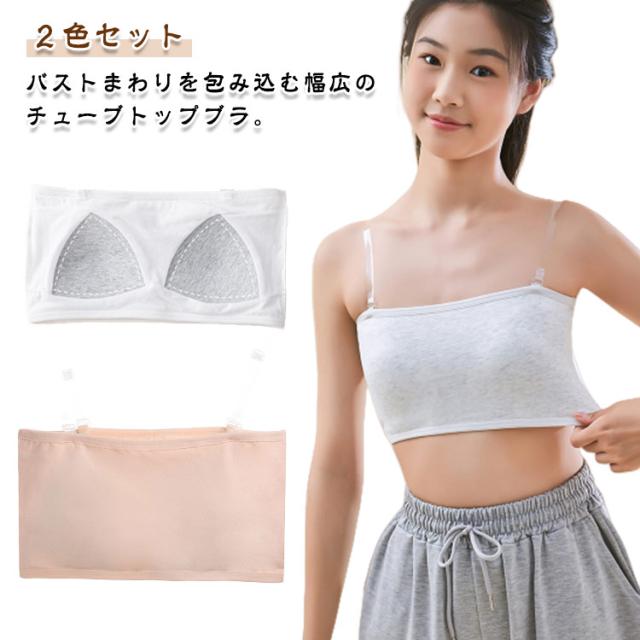 2色セット ストラップレス ブラ チューブトップ キッズ 学生 ジュニア カップ付き ずれない 落ちない 綿 コットン ベアトップ 子供 ベリーダンス インナー ダンス衣装 レッスンウェア レッスン着
