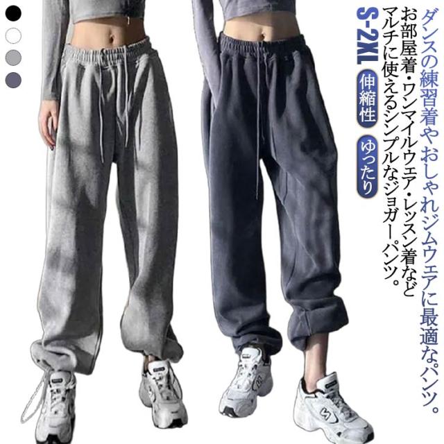 スウェットパンツ レディース ロングパンツ ダンス ストリート 大人 無地 パンツ 黒 白 春秋 ボトムス リラックス ウエストゴム 伸縮性 ストレッチ ゆったり ルームウェア 部屋着 おしゃれ ジョガーパンツ スポーツ カジュアル 冬 練習着 衣装 ヒップホップ 送料無料
