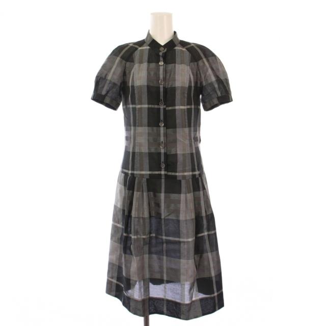 【中古】バーバリー ロンドン BURBERRY LONDON フレアワンピース シャツ ひざ丈 半袖 チェック柄 シルク混 36 黒