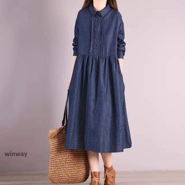 デニムワンピース レディース 40代 ワンピース膝丈ワンピース 長袖チュニックワンピース 大きいサイズ ロングシャツ Aラインワンピース 膝丈 お洒落 長袖 秋ワンピース 大人 着痩せ 30代 40代 50代 60代 おしゃれ オシャレ ママワンピース 母親 ママコーデ 秋物 ワンピース おしゃれカジュアル