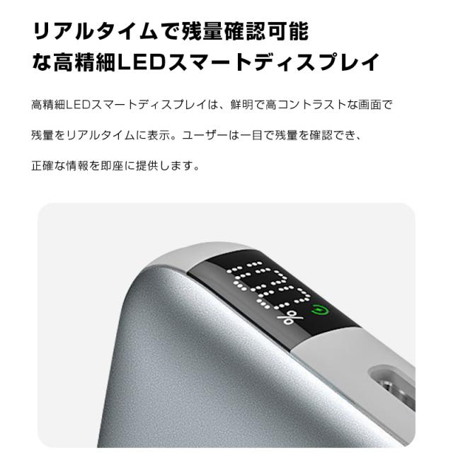 搭載されたデジタル残電量表示機能が、充電状況を明確に可視化。バッテリー残量を1%単位で正確に表示します。LEDディスプレイは暗所でも視認性が高く、充電計画を立てやすい設計。突然の電力切れを防ぎ、ユーザーに安心感を与える機能性が特徴です。